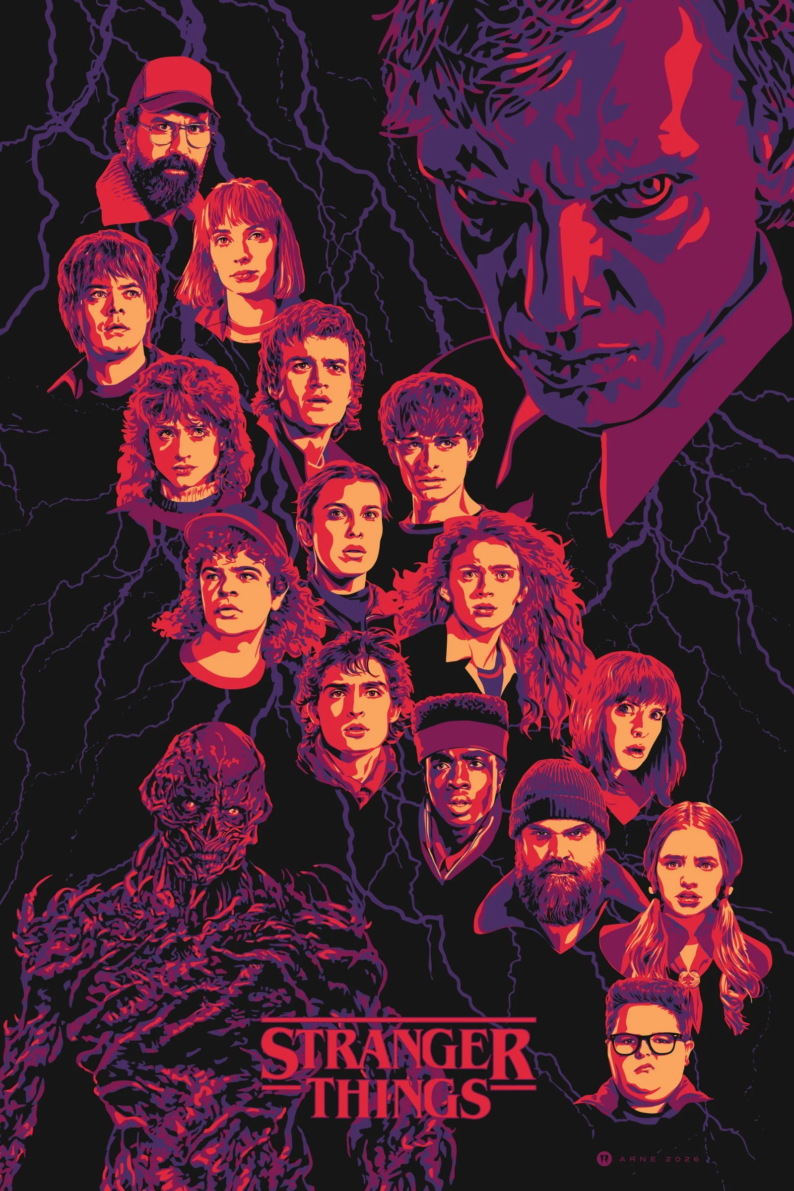 Each poster depicts a character from the show in a posterized style that not only made it easier for fans to reproduce but also gave it a more home grown/grassroots feel . By the time I was finished, 100 posters were completed. This artwork is the combination of 9 of the very first ones created.